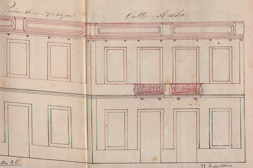 Sol·licitud de permís de construcció d'un pis i reformar les façanes d'una casa situada al carrer Ample núm. 19 cantonada amb el carrer Primitiu Artigues, i també amb sortida al carrer de la Pau número 22